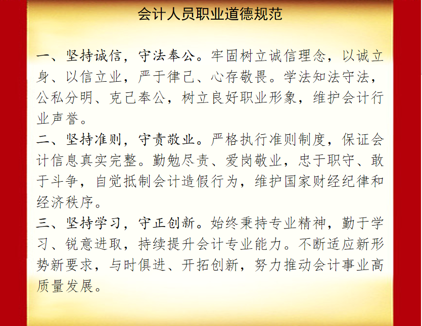 与会人员分别结合自己的工作经历、身边人坚持会计职业道德和操守的典型事例,就如何不断提升业务的规范性发表自己的见解,谈了各自的认识和体会,纷纷表示将牢记“会计人员职业道德规范”,坚持准则、坚守底线,以实际行动维护财经纪律的严肃性、捍卫会计人的声誉。为助推公司高质量发展提供刚性约束。